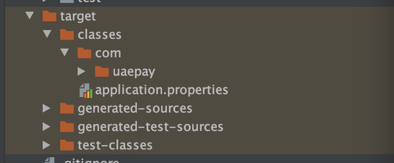 最后去target目录下看编译好的代码,才发现并没有application.properties文件,原来问题出在了这里,豁然开朗,问题转化成了:为什么配置文件没编译出来。