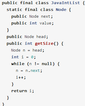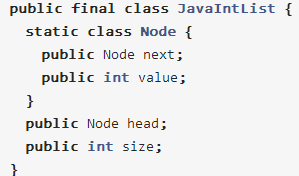 举个例子,假如有人要用Java实现一个单向链表类,可能会这样写: