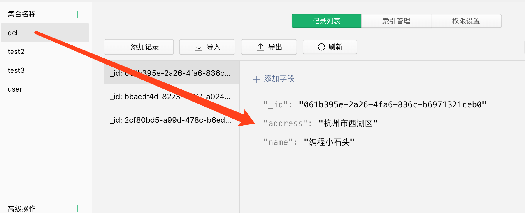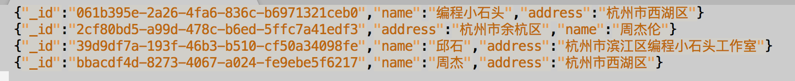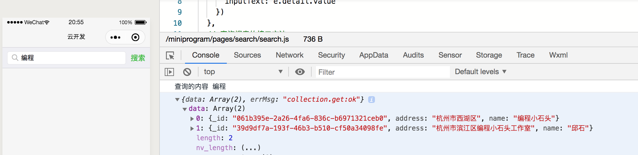 可以看到我们搜索到的两条数据,一个是name字段为 编程小石头,