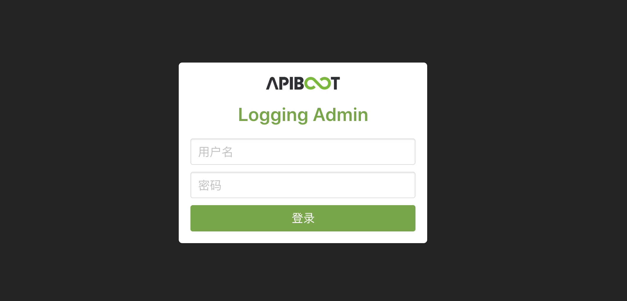 因为Spring Security的安全拦截,会直接跳转到ApiBoot Logging Admin内置的登录页面,输入我们在application.yml配置的用户名、密码即可登录。