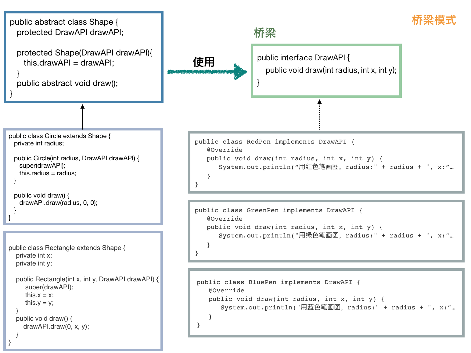 作用:将抽象部分与其实现部分分离,使它们都可以独立地变化