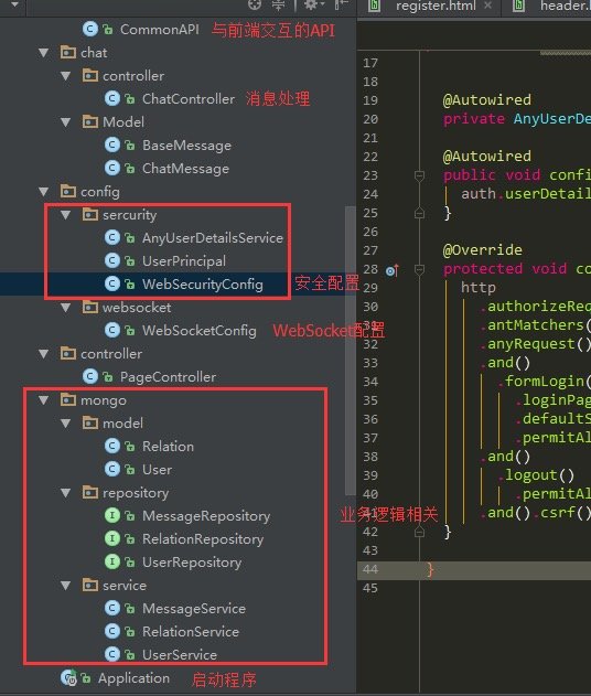 利用Spring Boot作为基础框架,Spring Security作为安全框架,WebSocket作为通信框架,实现点对点聊天和群聊天。