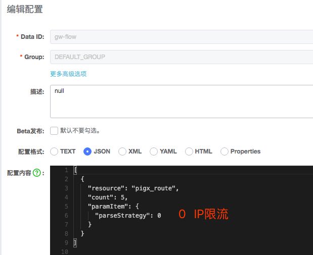 sentinel-datasource-nacos作为sentinel的数据源,可以从如上 nacos 管理台实时刷新限流参数及其阈值- 目前sentinel dashboard 1.6.2 暂未实现gateway 流控图形化控制 ,