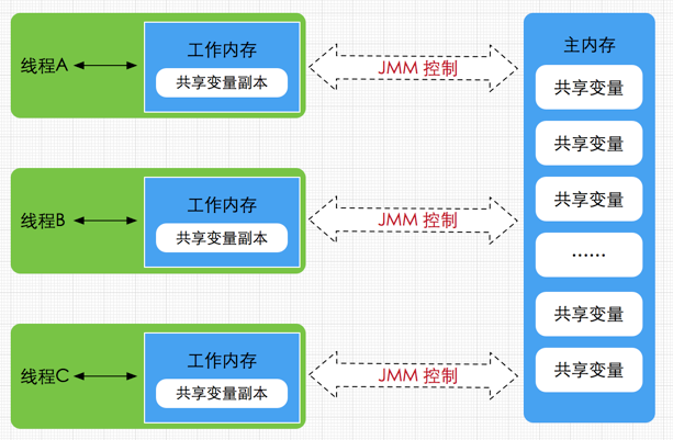 Java内存模型(即Java Memory Model,简称JMM)本身是一种抽象的概念,并不真实存在。Java线程之间的通信由JMM控制,JMM决定一个线程对共享变量的写入何时对另一个线程可见。从抽象的角度来看,JMM定义了线程和主内存之间的抽象关系。