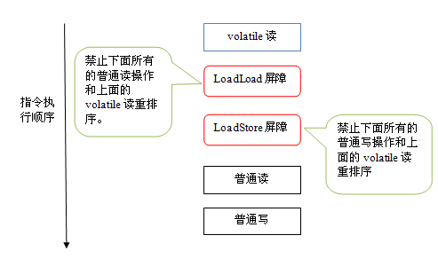 读final域的重排序规则是:在一个线程中,初次读对象的引用与初次读这个对象包含的final域,JMM禁止重排序这两个操作(该规则仅仅针对处理器)。编译器会在读final域的操作前面加一个LoadLoad屏障。