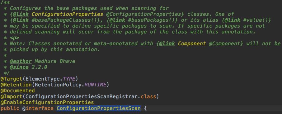 2.2.0新增一个@ConfigurationPropertiesScan的注解,默认是开启的扫描 main 启动类所在的包路径的所有ConfigurationProperties,所以可以不用再加@Component或者@Configuration -