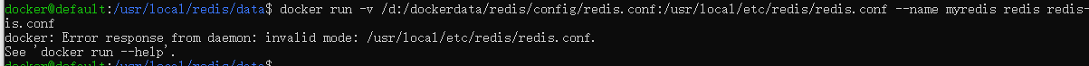 docker run -v /d:/dockerdata/redis/config/redis.conf:/usr/local/etc/redis/redis.conf --name myredis redis redis-server /usr/local/etc/redis/redis.conf