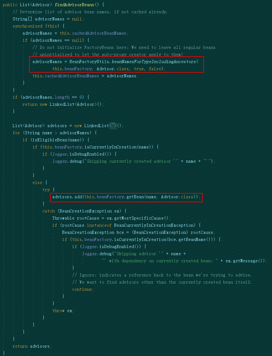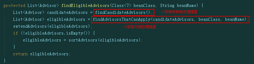 下面让我们来看Spring如何在所有候选的增强器中获取匹配的增强器: