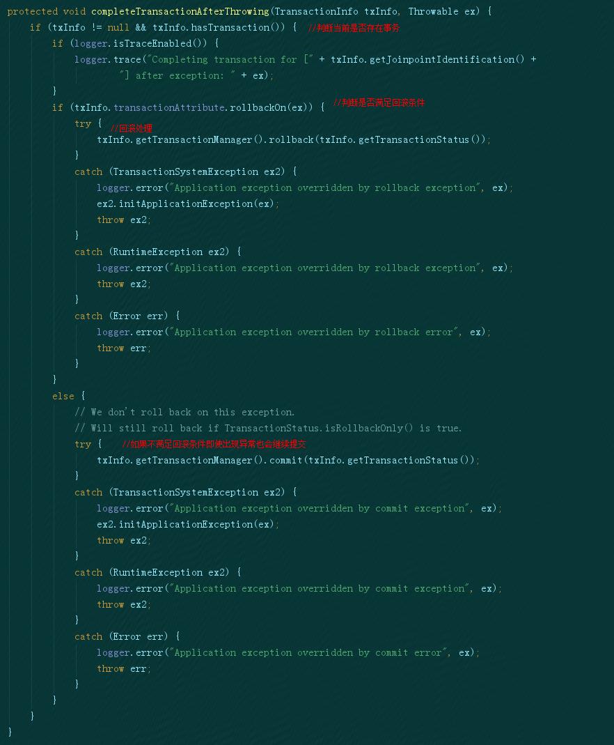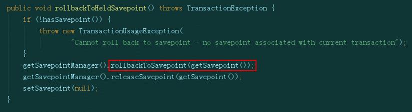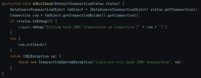 然后就是我们目标业务方法的执行了,根据执行结果的不同做提交或回滚操作,我们先看一下回滚操作: