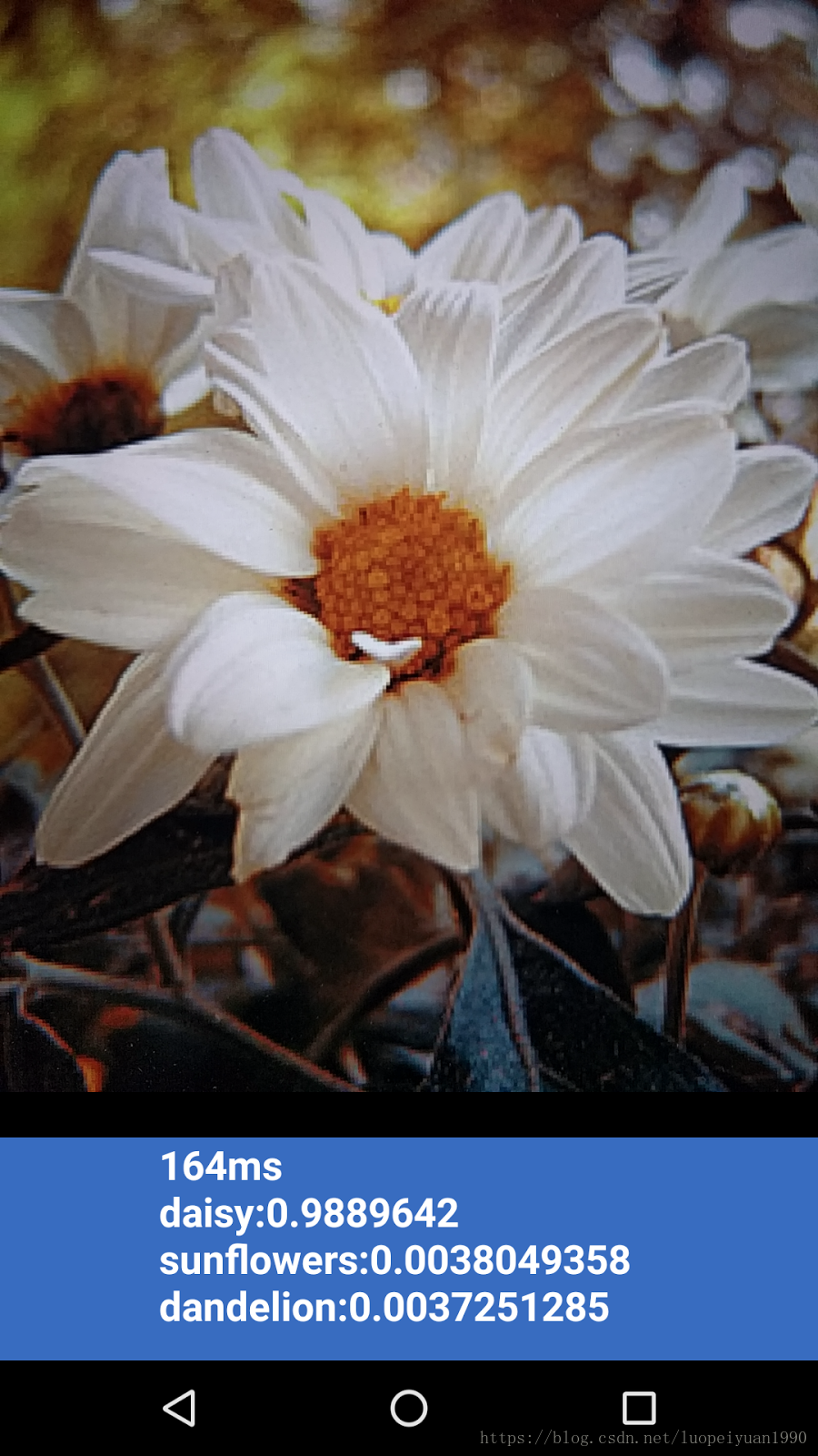一个简单的相机应用程序,运行TensorFlow图像识别程序来识别花朵。
