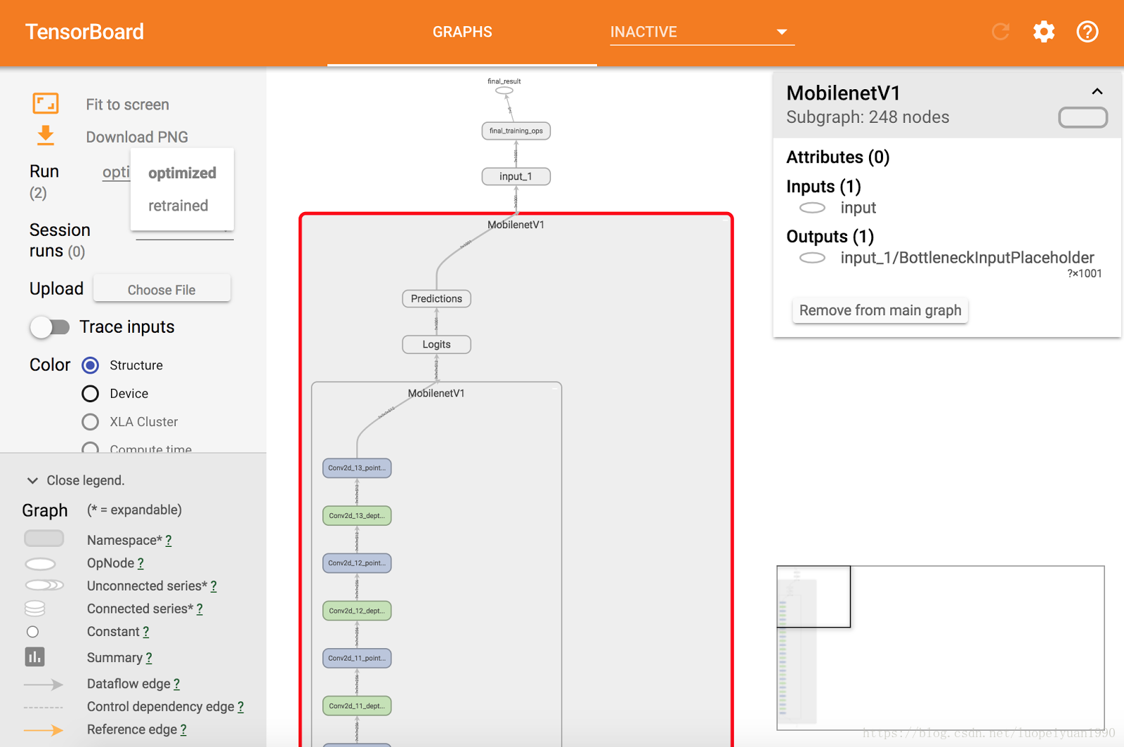 python -m scripts.graph_pb2tb tf_files/training_summaries/retrained \ tf_files/retrained_graph.pb python -m scripts.graph_pb2tb tf_files/training_summaries/optimized \ tf_files/optimized_graph.pb