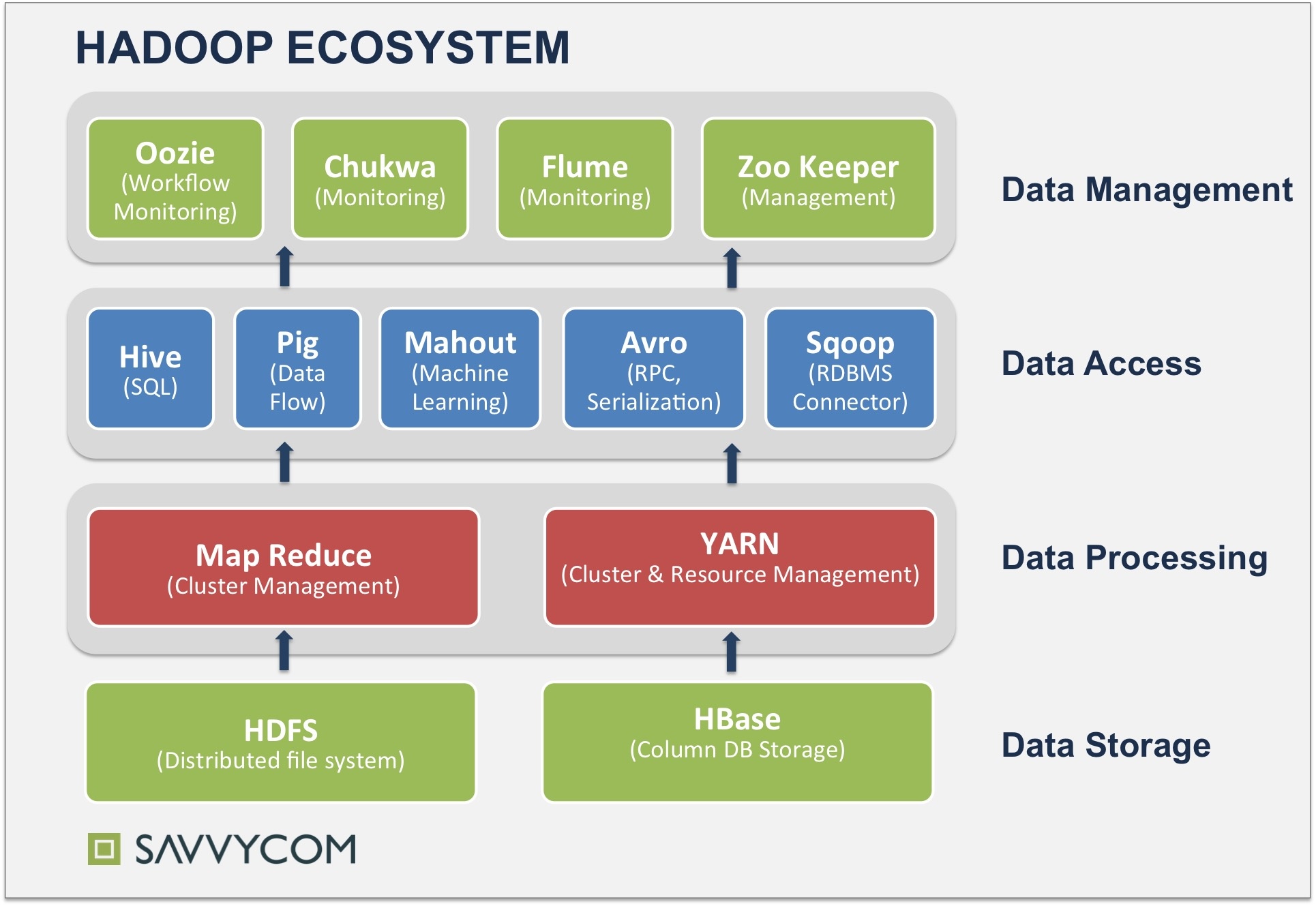 谷歌公司发布的一系列技术白皮书导致了Hadoop的诞生。Hadoop是一系列大数据处理工具,可以被用在大规模集群里。Hadoop目前已经发展为一个生态体系,包括了很多组件,如图所示。