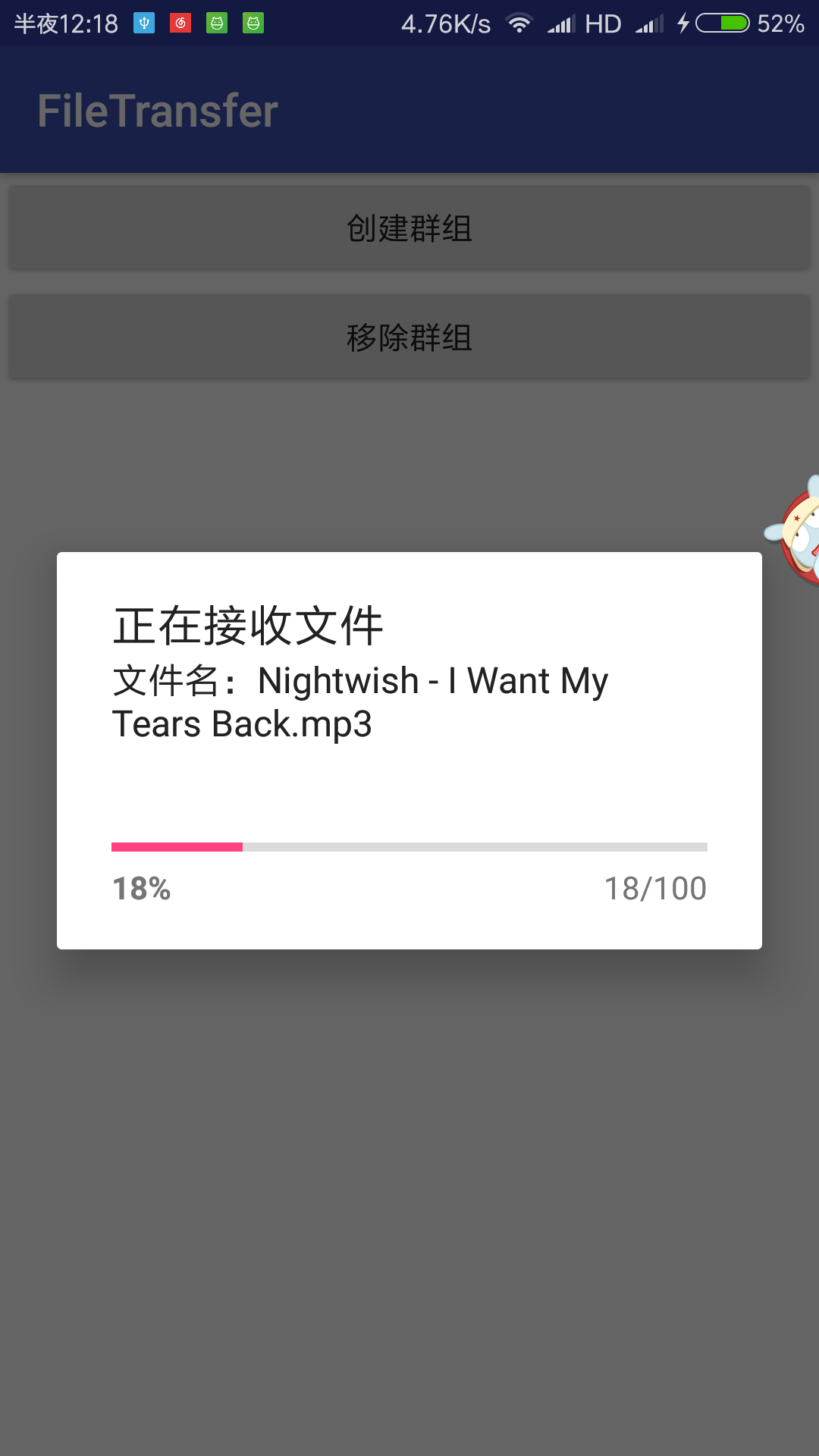 将服务器端的IP地址作为参数传给 FileSenderService,在正式发送文件前,先发送包含文件信息的 FileTransfer ,并在发送文件的过程中实时更新文件传输状态