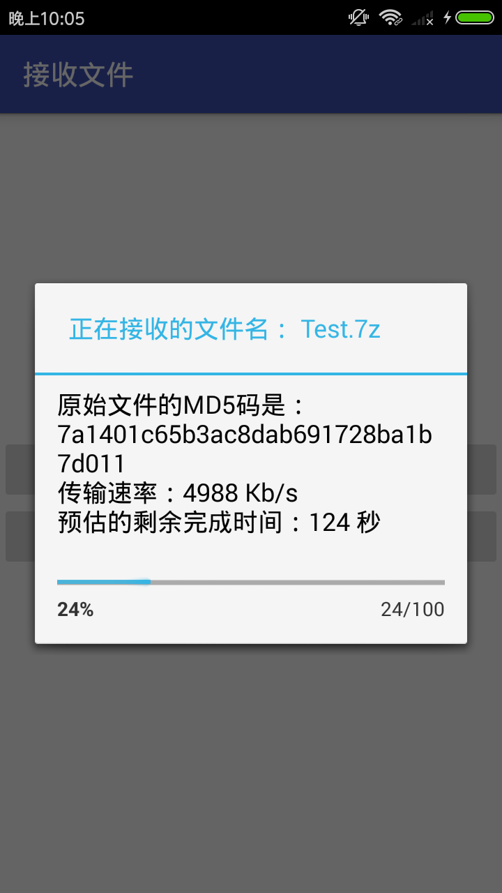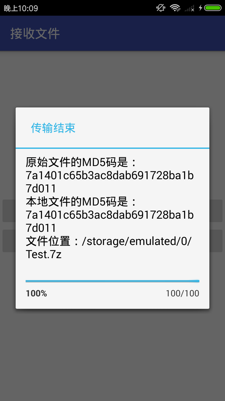 progressDialog.setTitle("传输结束,正在计算本地文件的MD5码以校验文件完整性");