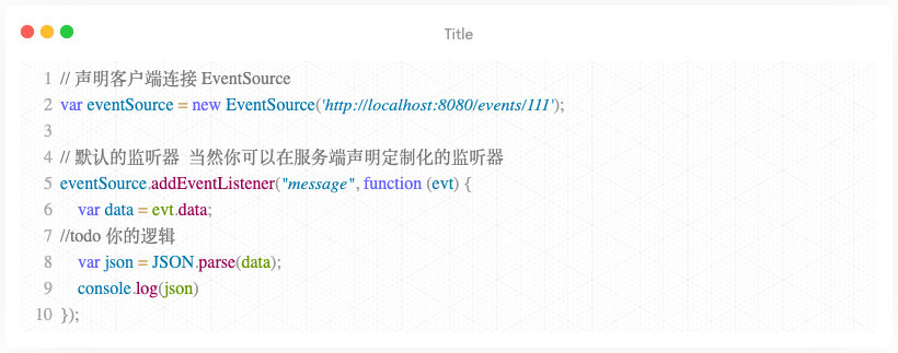 - 声明客户端连接, 初始化EventSource对象。