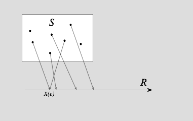 如果X指定概率空间S中每一个事件e都有一个实数X(e),同时针对每一个实数r都有一个事件集合Ar与其相对应,其中Ar=e:X(e)≤r,那么X被称为随机变量。 – wikipedia
