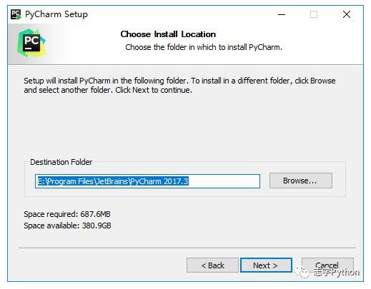 2、选择安装目录,Pycharm需要的内存较多,建议将其安装在D盘或者E盘,不建议放在系统盘C盘: