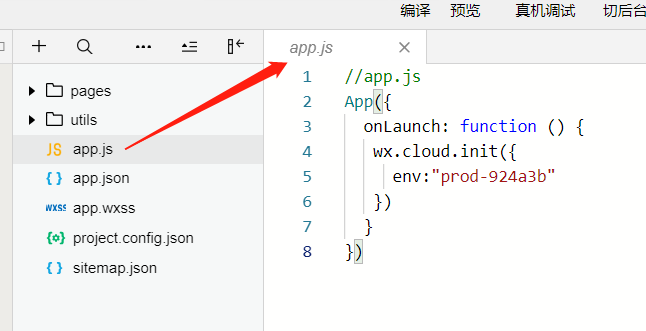 - 2,记得在app.js里初始化云开发环境id,如下图