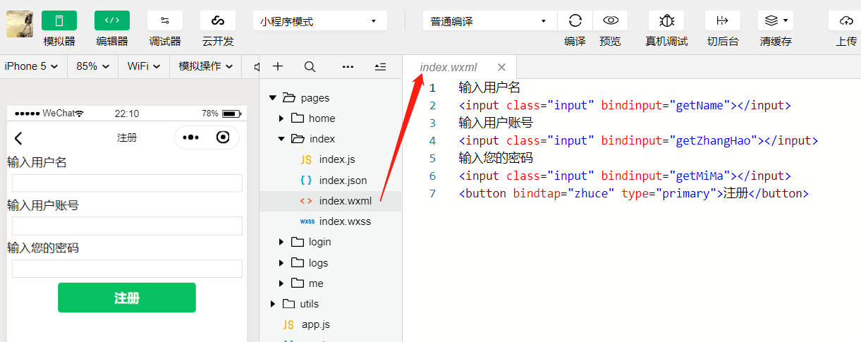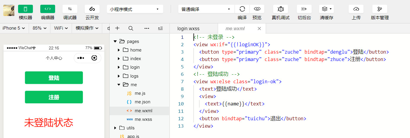 到这里我们就完整的实现了小程序的登陆注册功能了,虽然比较简单,没有做密码加密等一些复杂的操作,但是我们基本的登陆注册原理就是这样实现的,你只有先把最基础的登陆注册功能实现,学习后面复杂的登陆注册,验证码登陆等一系列知识,才会游刃有余。