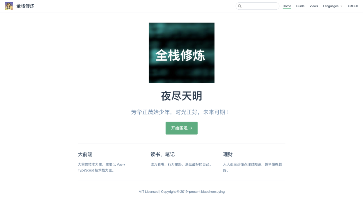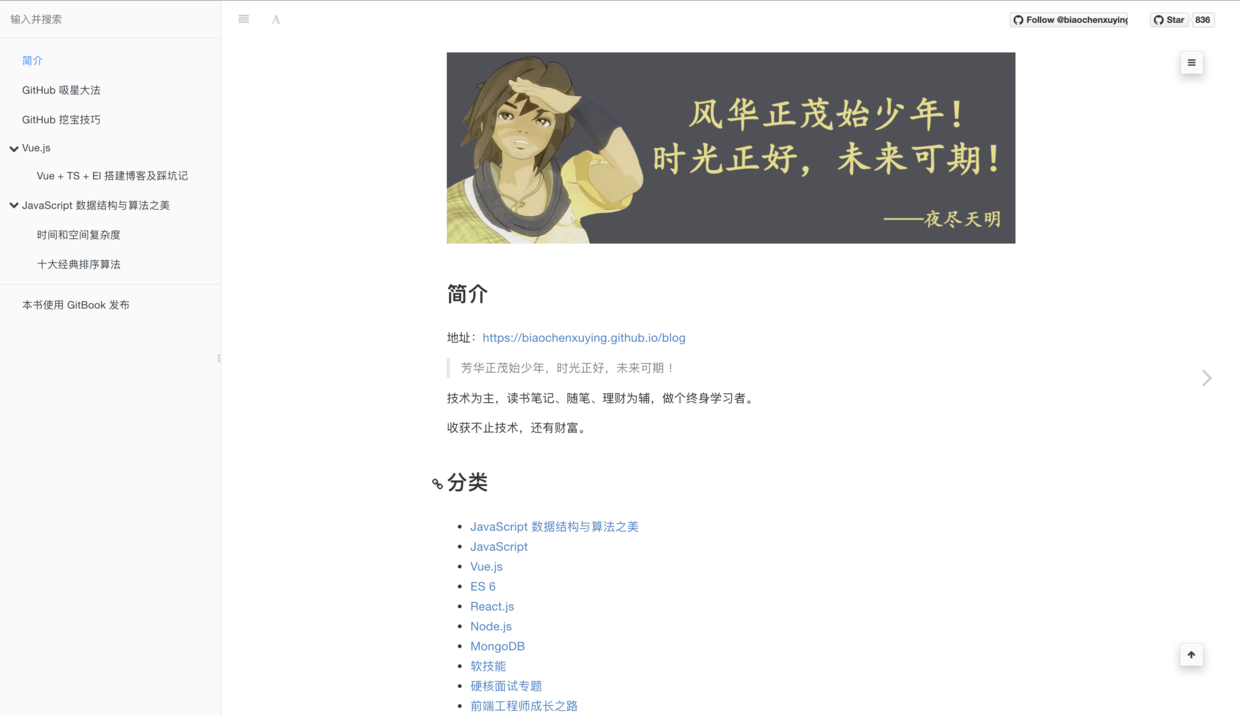 本文中使用 VuePress 和 GitBook 的搭建的完整示例代码都已经上传到 GitHub 上了,可以自行下载来用。