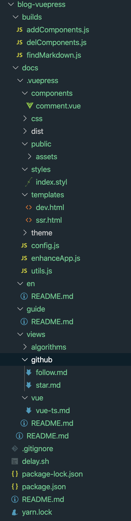 VuePress 遵循 “约定优于配置” 的原则,推荐的目录结构如下: