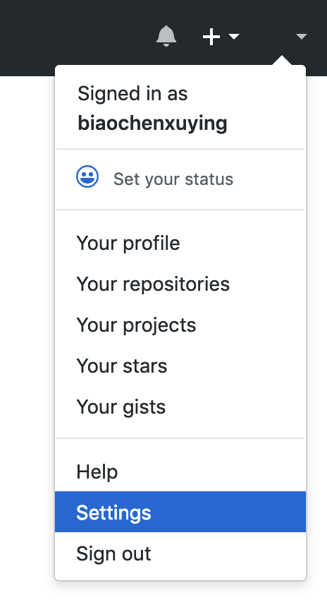 - 首先登录你的 GitHub 账号,然后点击进入Settings。