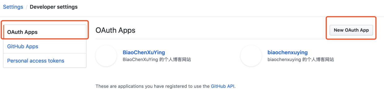 - 点击 OAuth Apps , Register a new application 或者 New OAuth App 。