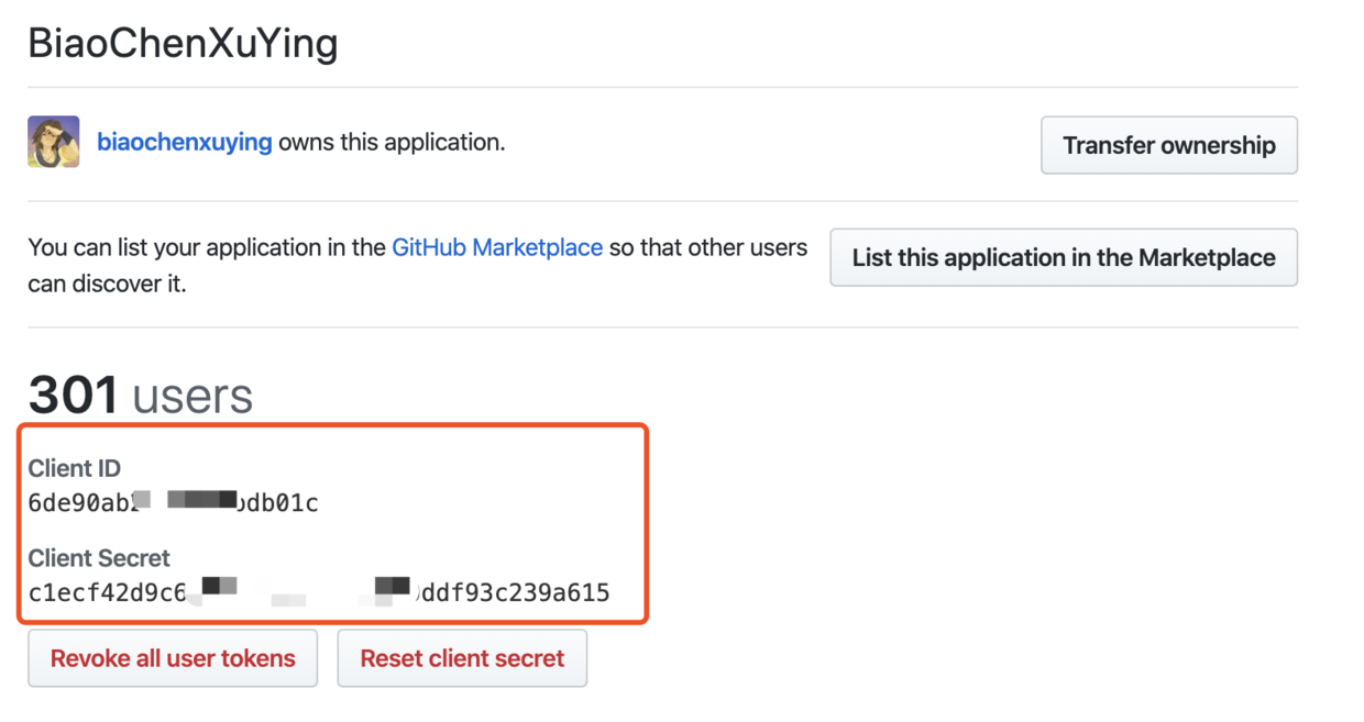 创建成功有 Client ID 和 Client Secret ,保存下来,后面我们会用到。