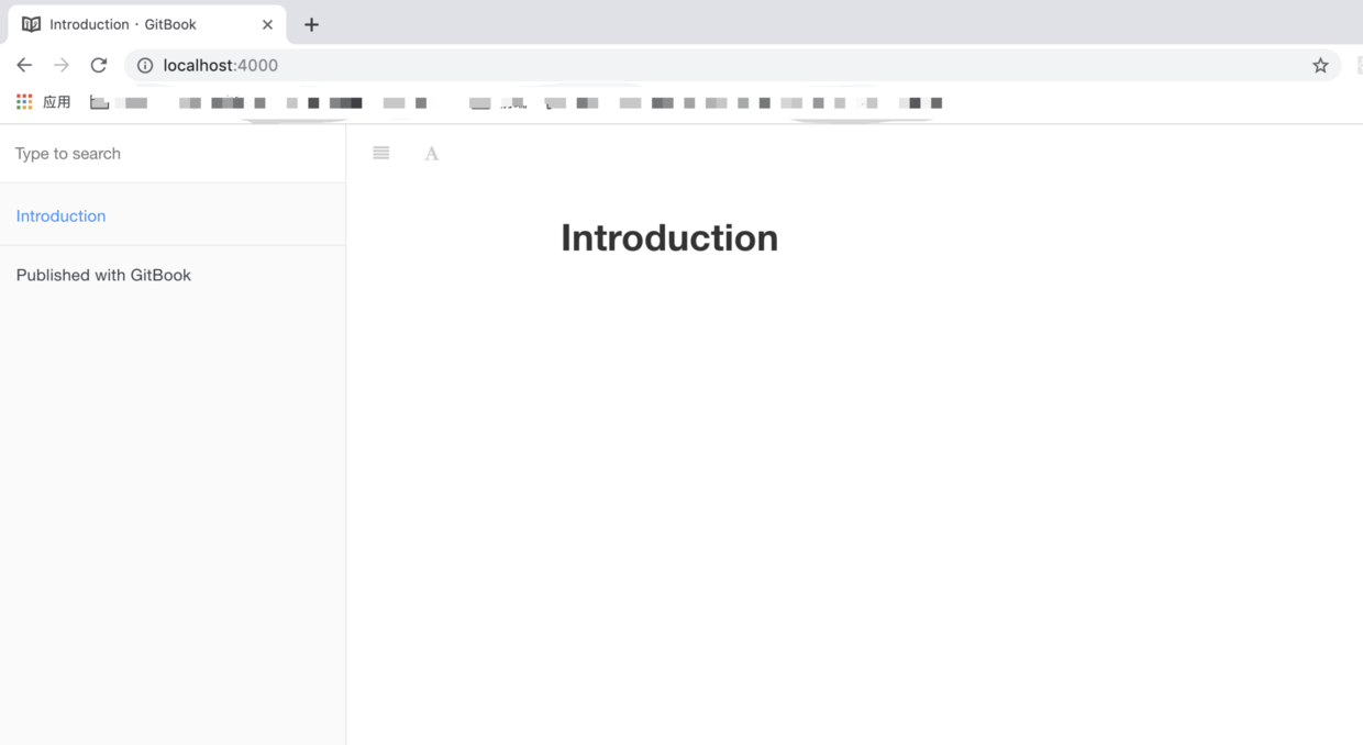 gitbook init初始化 README.md 和 SUMMARY.md 两个文件.gitbook build本地构建但不运行服务,默认输出到 _book/ 目录.gitbook serve本地构建并运行服务,默认访问 http://localhost:4000 实时预览.