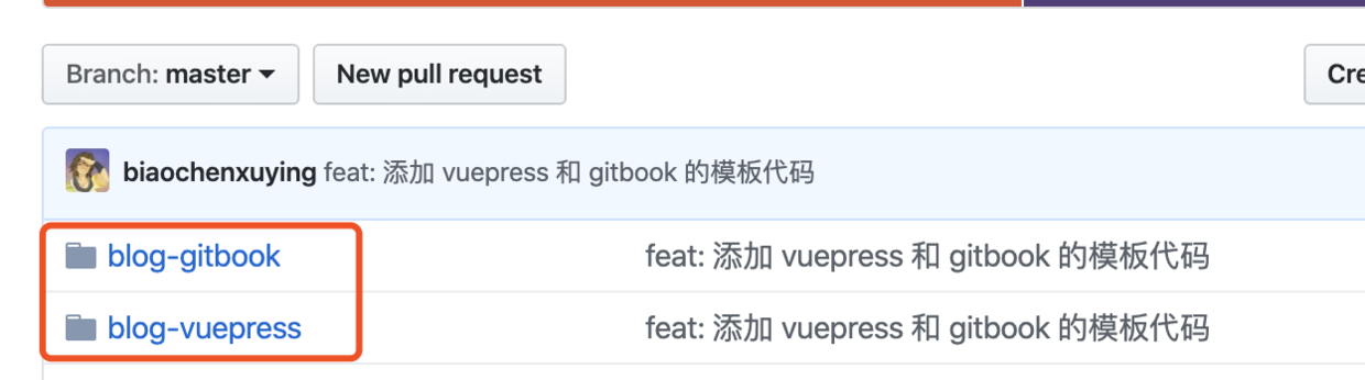 其中 VuePress 和 GitBook 的示例代码都在 blog-gitbook 和 blog-vuepress 里面了。