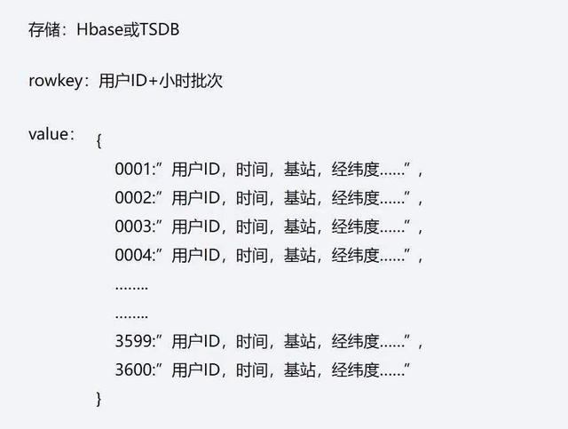 时序模型:主要保存用户的在线的时空位置等信息,可以基于业务场景需要进行各种快速的计算,比如非常方便的计算驻留时长,存储于Hbase或TSDB(时序数据库):