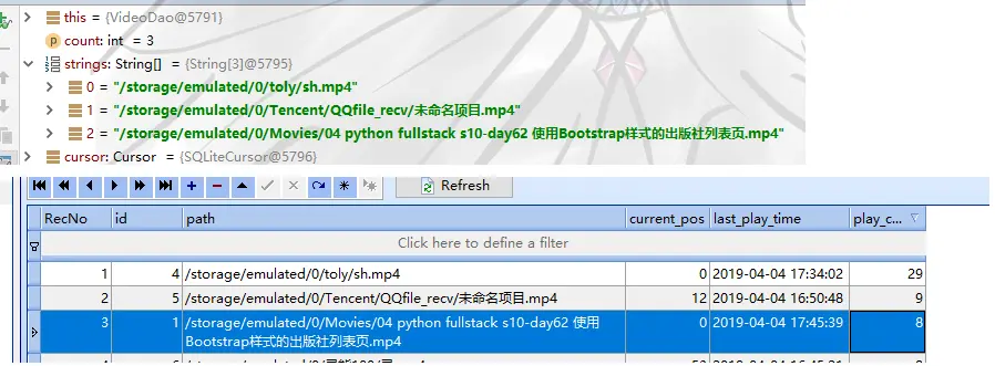 rawQuery("SELECT path FROM video_player ORDER BY last_play_time DESC LIMIT ?",