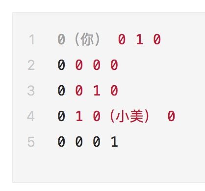 - BFS广度优先解决: 现在你要知道你从当前位置出发是否能够到达小美的位置。