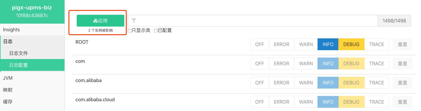 支持统一管理服务实例的日志级别,比如 upms启动多个实例,则此处设置会影响全部的服务实例