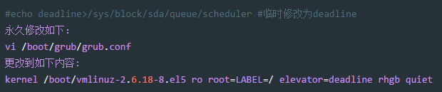 - raid、no lvm、 ext4或xfs、ssd、IO调度策略