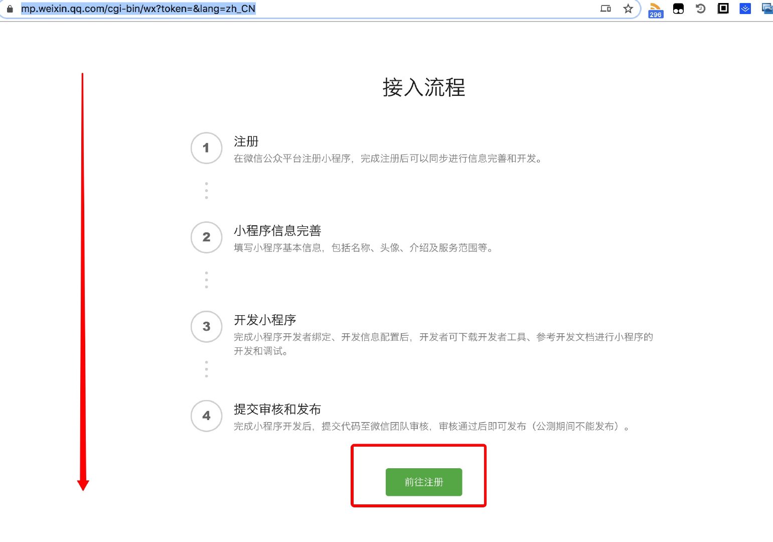 发现图案变成了,下面这样,点击[查看详情],进入小程序注册页面。