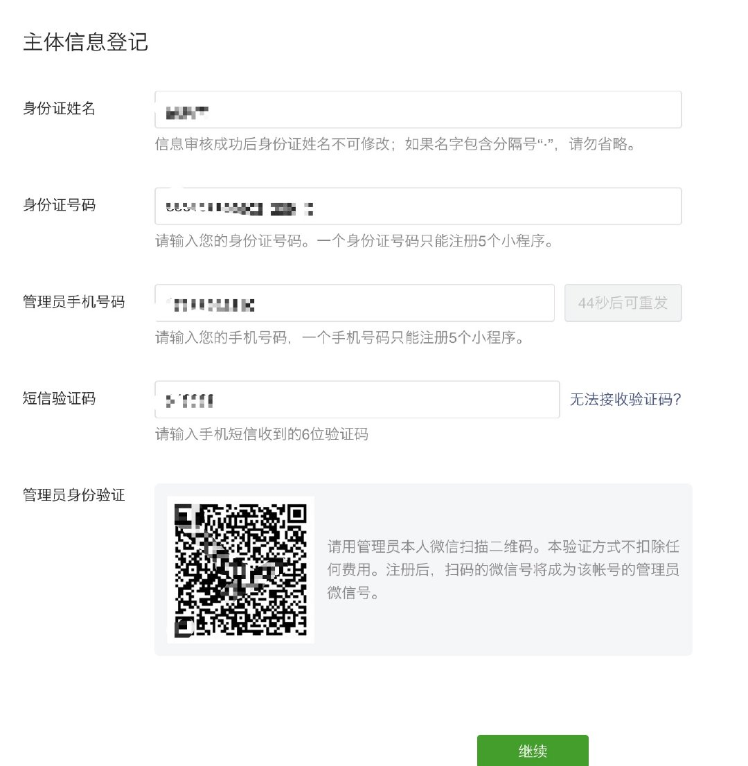选个人,下面的信息无脑填写,然后获取手机验证码,扫码确认管理员身份,一路下一步。