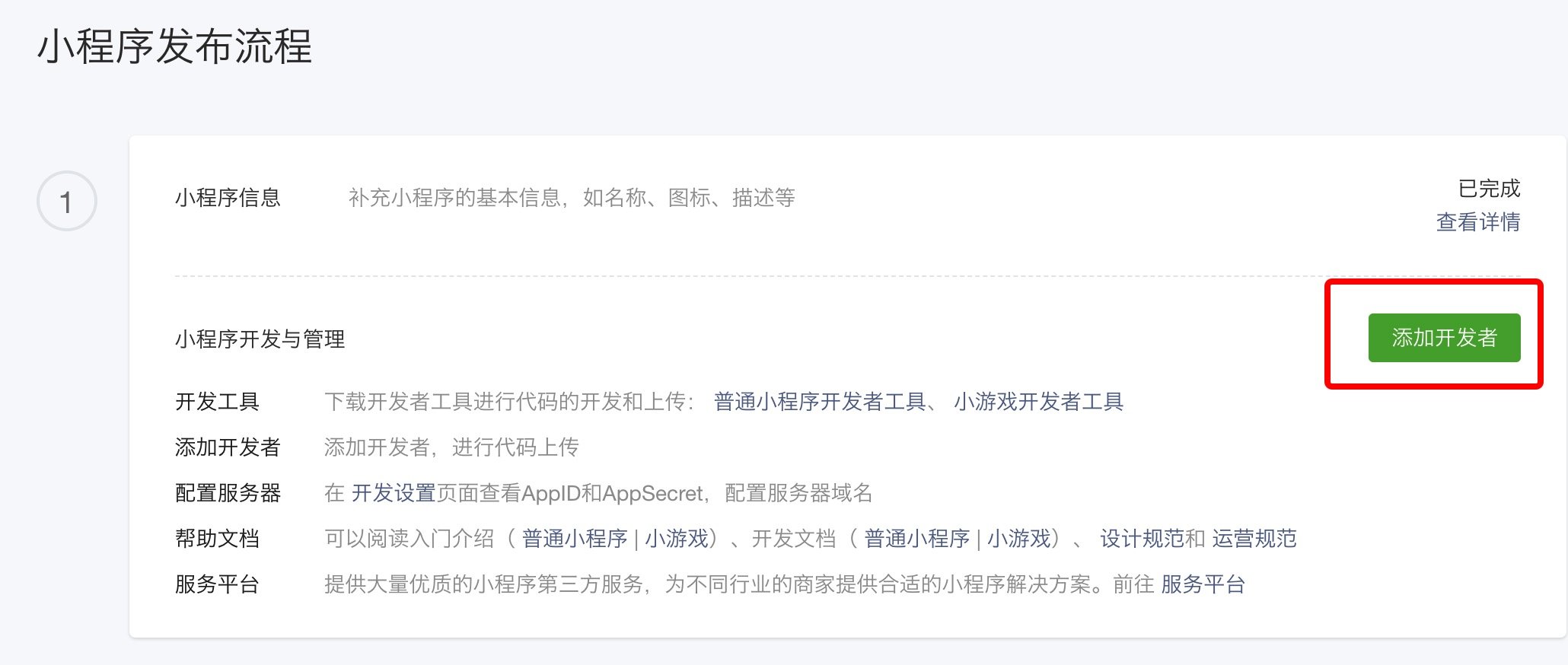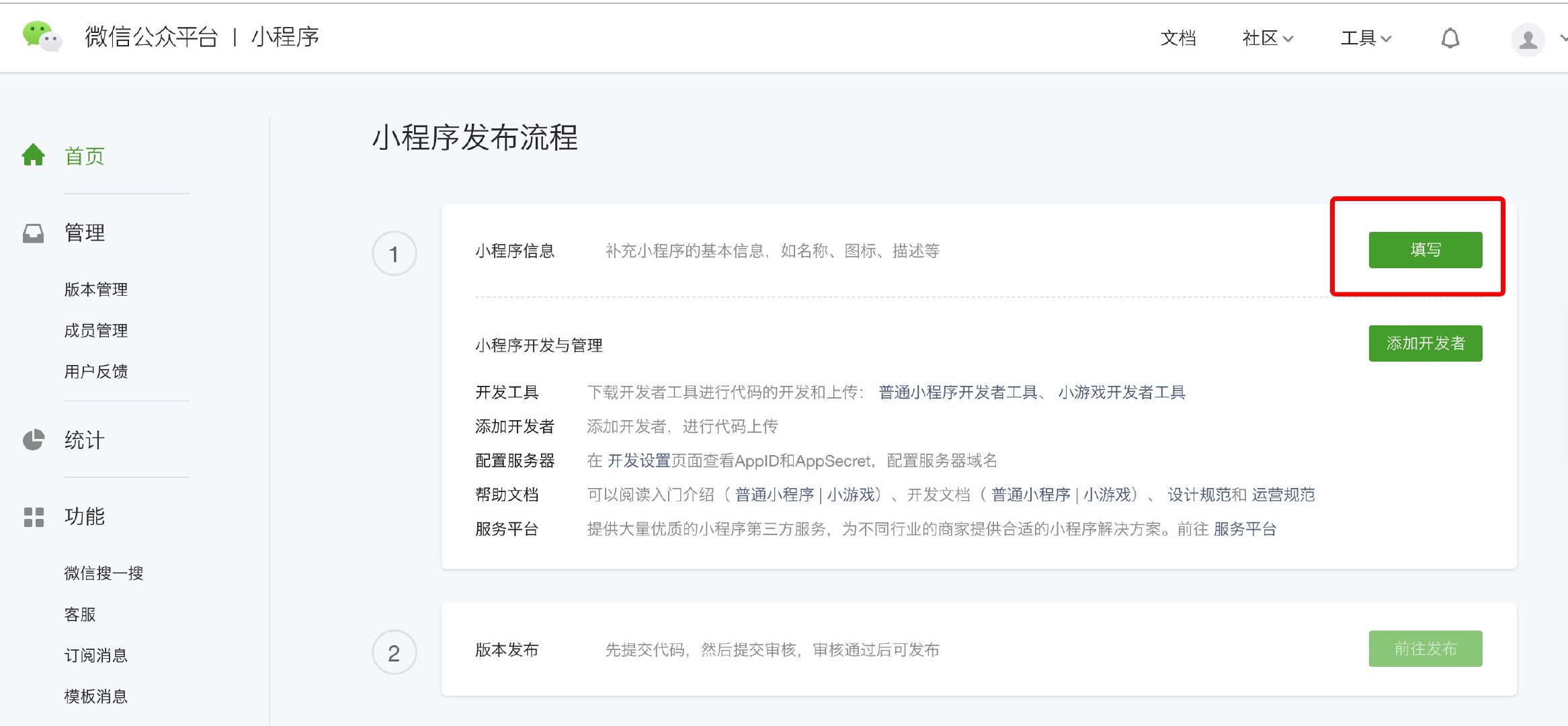 跳到这个页面,你已经完成 90% 了,点击完善小程序信息
