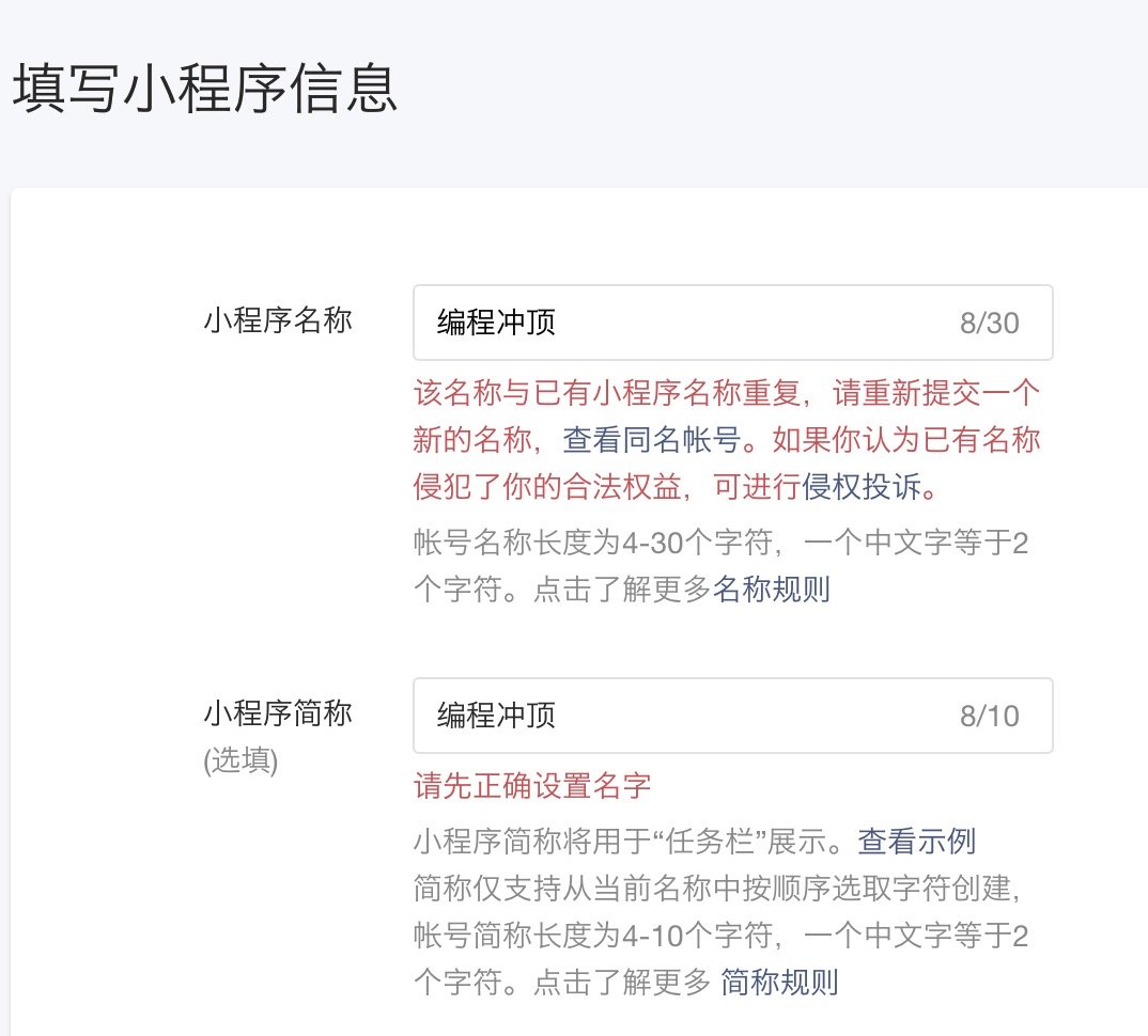 填写小程序名称、简介、头像、介绍和服务类目,还要手持身份拍照,名称比较难搞,多试几次就行。