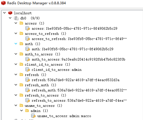 - 进行获取令牌操作,可以发现令牌已经被存储到Redis中。