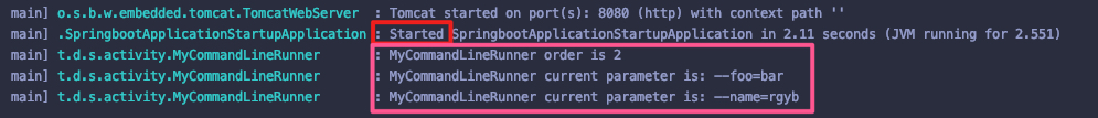 如果我们只是想简单的获取以空格分隔的命令行参数,那 MyCommandLineRunner 就足够使用了