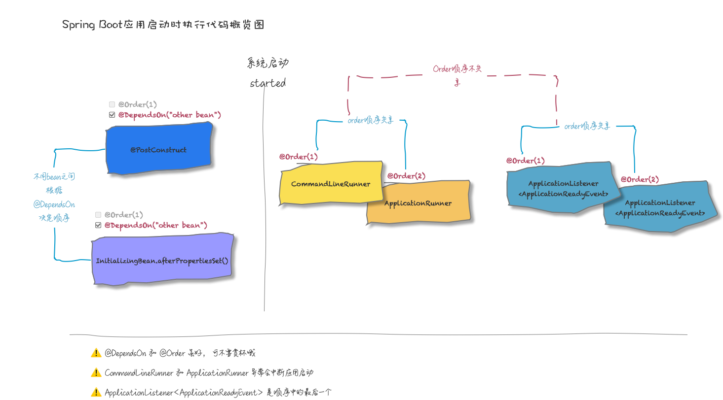 最后画一张图用来总结这几种方式(高清大图请查看原文:https://dayarch.top/p/spring-boot-execute-on-startup.html)