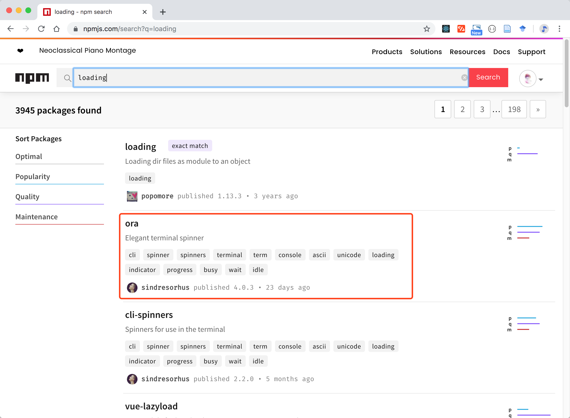 第二个结果 ora 也符合我们的需要。那我们现在就安装这两个 npm 包: