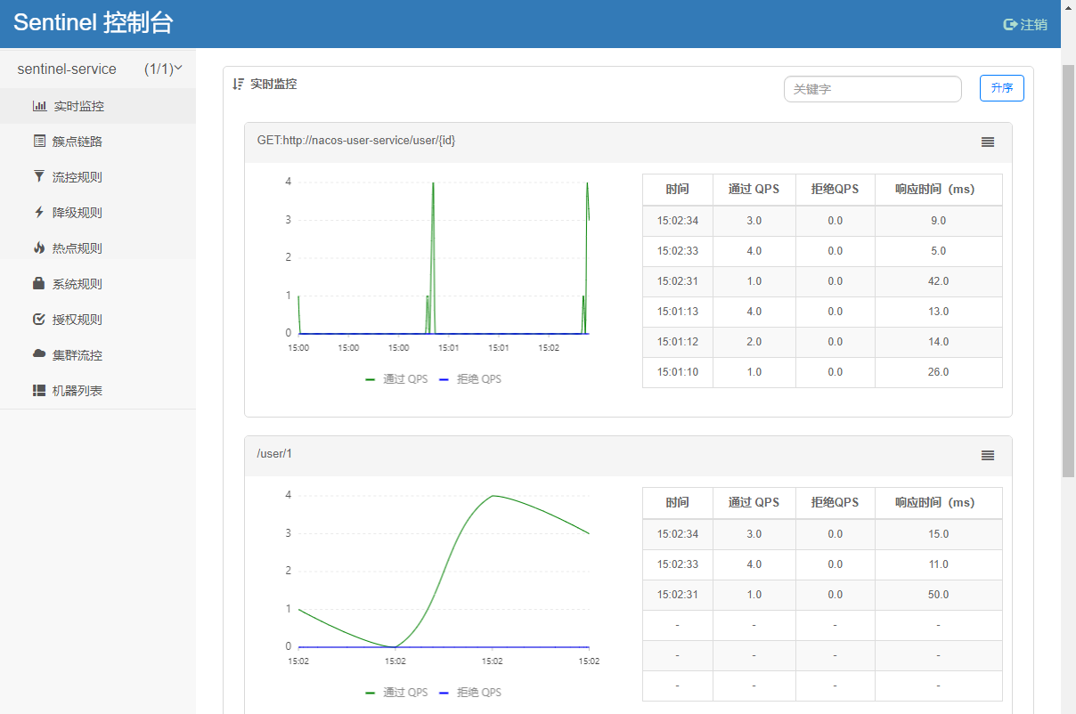 - Sentinel控制台可以查看单台机器的实时监控数据。
