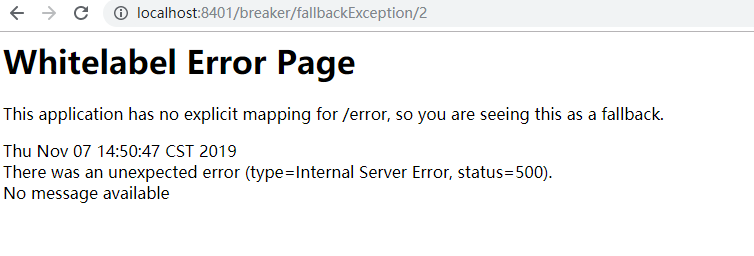 - 调用如下接口会发生服务降级,返回服务降级处理信息:http://localhost:8401/user/4