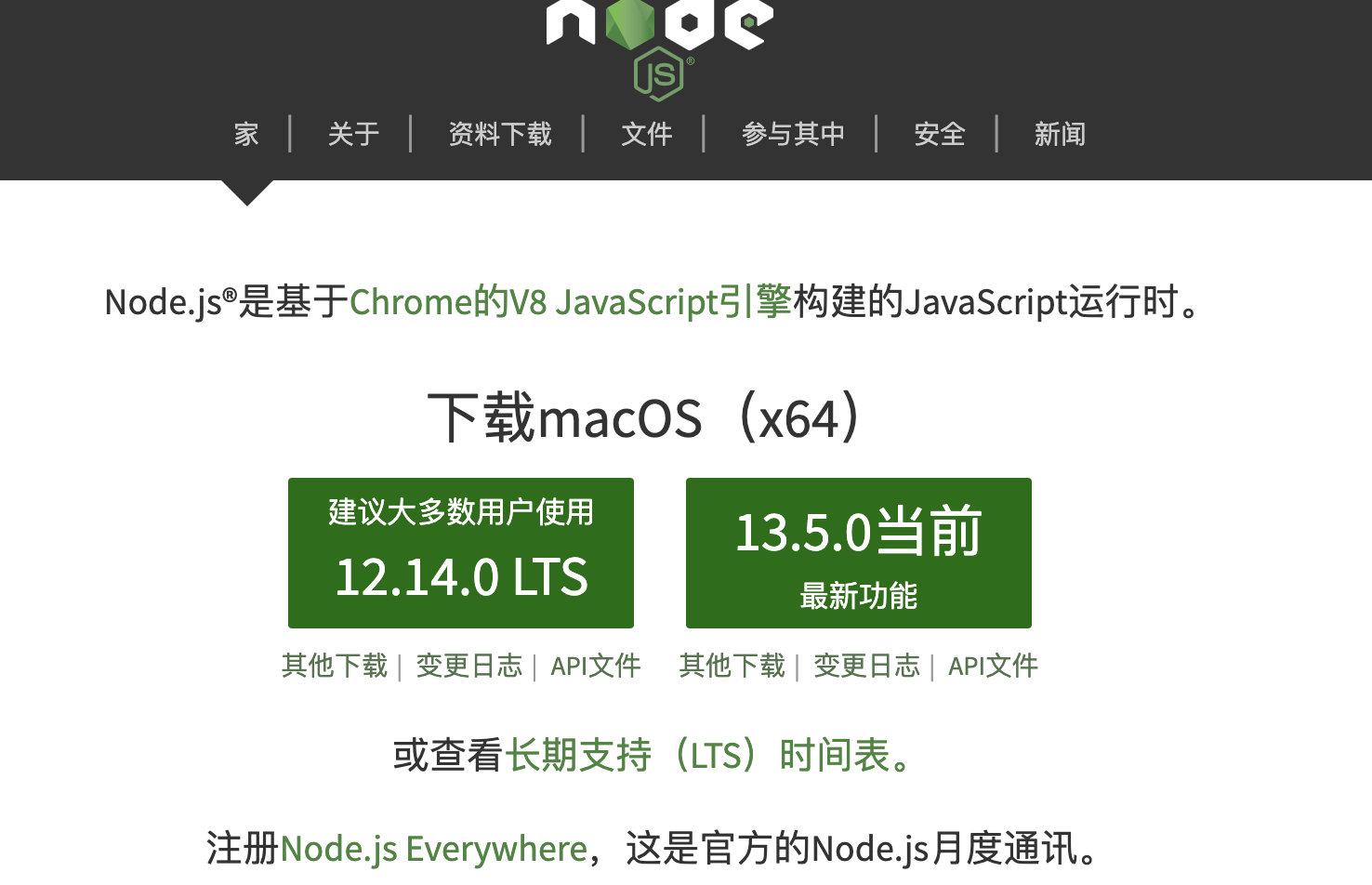 进入nodejs官网下载node.js,我下载的版本是12.14.0