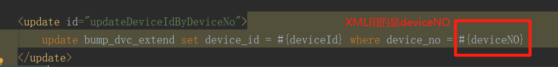 nested exception is org.apache.ibatis.binding.BindingException: Parameter 'deviceNO' not found. Available parameters are [deviceNo, deviceId, param1, param2]