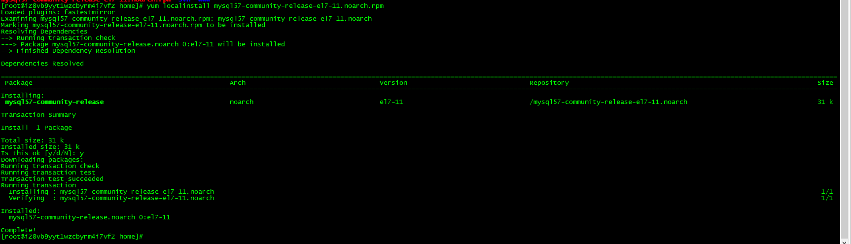 [root@qinshengfei ~]#yum localinstall mysql57-community-release-el7-11.noarch.rpm