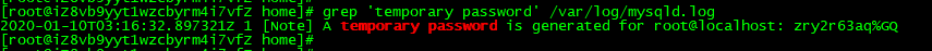 - mysql 安装完成之后,生成的默认密码在 /var/log/mysqld.log 文件中。使用 grep 命令找到日志中的密码