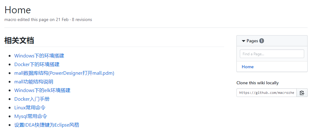 我们可以看下mall项目在刚发布之初的到底有哪些文档: